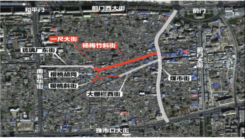 項(xiàng)目位于大柵欄地區(qū)煤市街以西,包括原住民生活區(qū)及楊梅竹核心功能區(qū);項(xiàng)目占地面積約8.8公頃,現(xiàn)狀1711戶,單位70個(gè),現(xiàn)狀建筑面積75920平方米,是實(shí)現(xiàn)大柵欄及東琉璃廠貫通的重要區(qū)域。