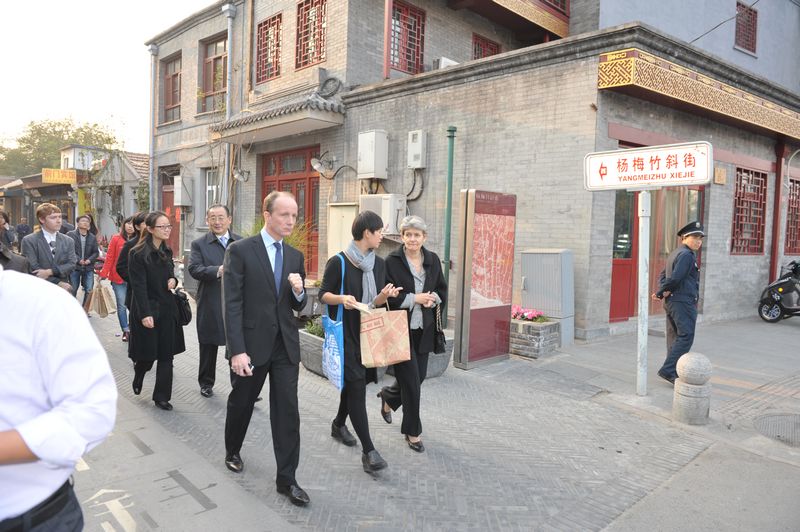 2013年10月21日下午,聯(lián)合國教科文組織總干事伊琳娜·博科娃女士參觀了楊梅竹斜街和大柵欄商業(yè)街,隨行人員包括聯(lián)合國教科文組織北京代表處主任辛格先生,北京市科委主任閆傲霜及北京市科委北京工業(yè)設(shè)計(jì)促進(jìn)中心主任陳冬亮。西城區(qū)副區(qū)長陳寧、大柵欄琉璃廠建設(shè)指揮部常務(wù)副書記王志忠隨行陪同,北京大柵欄琉璃廠文化發(fā)展有限公司副總經(jīng)理賈蓉隨行講解。
