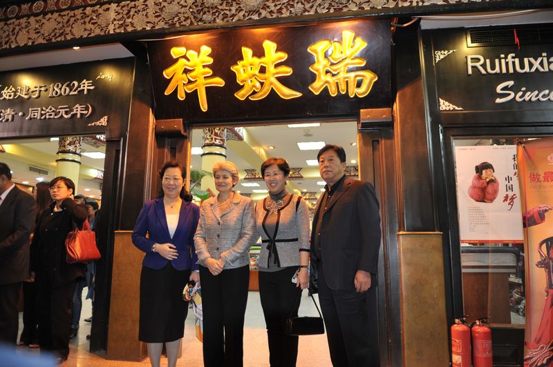 伊琳娜·博科娃參觀了楊梅竹斜街,對大柵欄更新計(jì)劃這一模式給予了充分肯定。隨后,伊琳娜·博科娃游覽了大柵欄商業(yè)街,她高度評價(jià)了古老而繁華的街區(qū)、老字號的精良工藝,并進(jìn)入內(nèi)聯(lián)升和瑞蚨祥參觀。