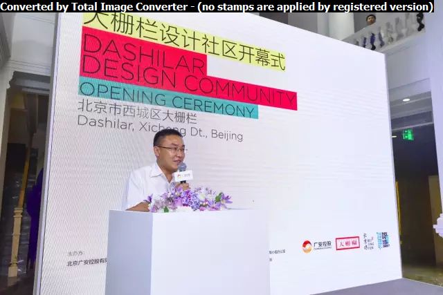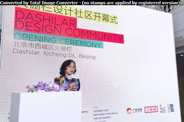 一年一度的國際設(shè)計周作為北京最具影響力的大型文化活動之一,今年再一次選擇與大柵欄更新計劃合作,作為設(shè)計周主辦方代表,北京歌華文化發(fā)展集團副總經(jīng)理、設(shè)計周組委會辦公室副主任陳工女士表達了對大柵欄設(shè)計社區(qū)過去幾年工作的肯定以及對今年活動的期望與祝愿。